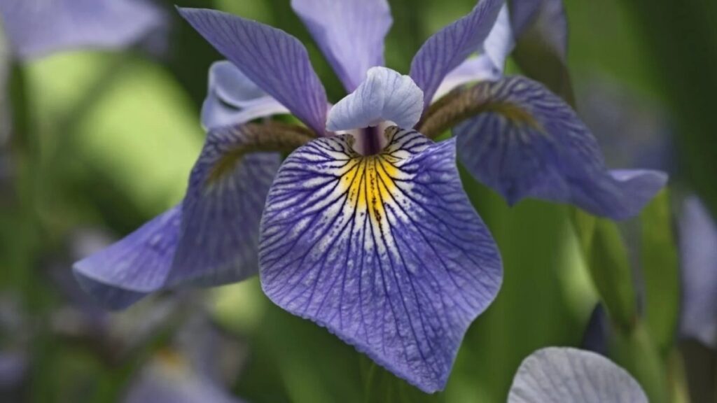 Blue flag iris is a native wetland plant with elegant blue-violet blooms and sword-like leaves.