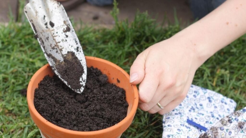Fill your container with soil, leaving a few inches at the top to avoid water runoff. Make sure the soil is loose and airy to promote good root growth. You can mix in some organic fertilizer or compost for extra nutrients, especially if you’re using new potting soil.