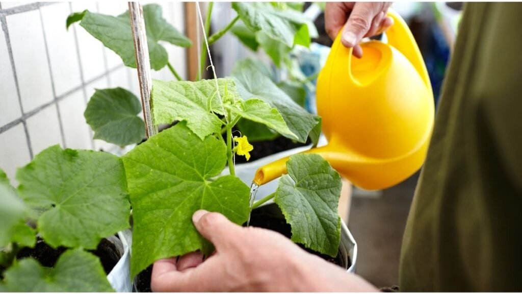 Watering Cucumbers in Containers