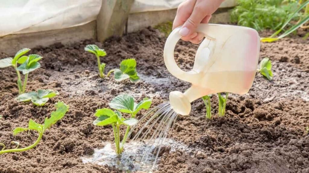 Strawberries need consistent moisture to grow well. Water the plants regularly, especially during dry periods. However, be careful not to overwater them, as this can lead to root rot. It’s best to water the plants early in the morning to allow the soil to dry out by evening, reducing the risk of disease.