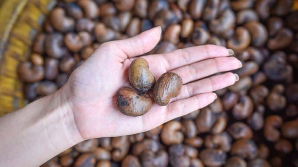 To harvest the cashews, carefully collect the nuts and remove them from the cashew apple. You’ll need to roast the cashew nuts to remove the outer shell before they can be eaten. Roasting also enhances the flavor.