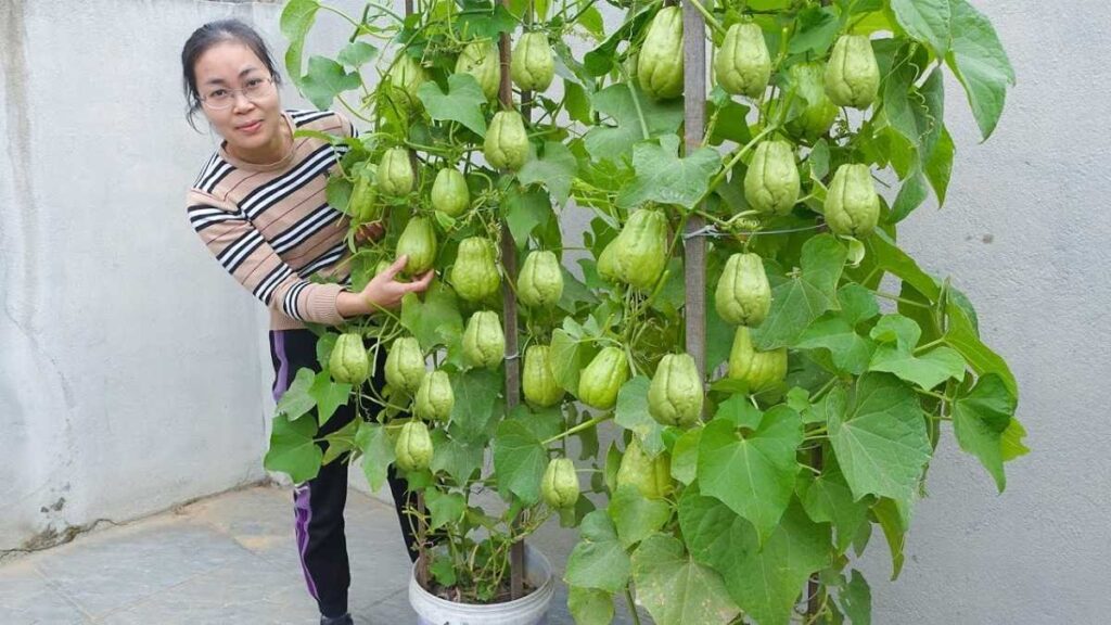 Container-grown chayote needs regular watering and fertilizing, just like garden-grown plants. If you live in a cooler climate, you may need to bring the container indoors during colder months or use a grow light to extend the growing season.